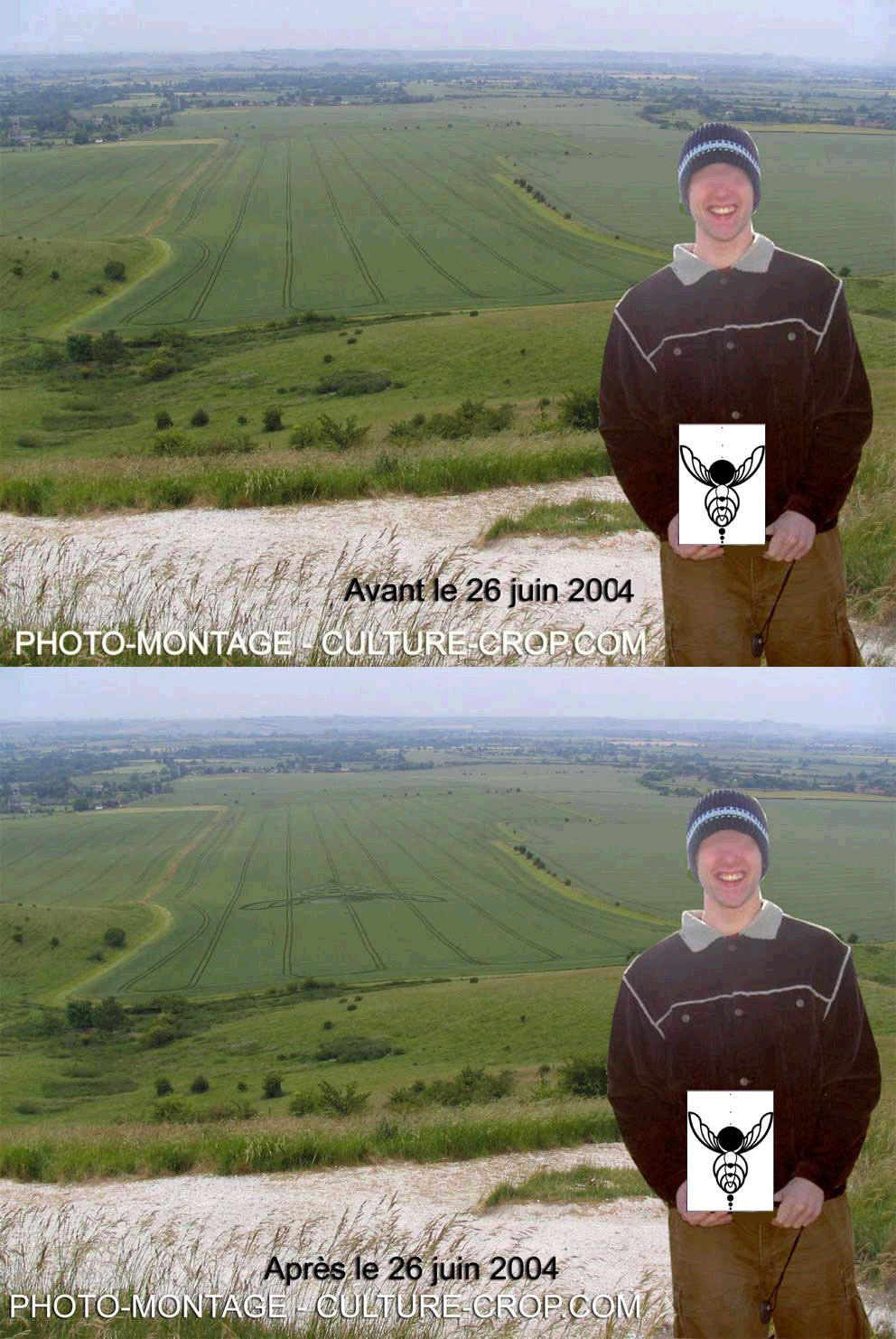 http://www.culture-crop.com/cropcirclepreuvemanmade.htm The captions read : "Before 26 June 2004", and "After 26 June 2004". The message is: 'This is how circlemakers could prove that they made a formation". [- and still remain anonymous]. One of the many ways in which they could prove the origins of a formation before the event. The problem is that any photo can be manipulated. Perhaps a better way would be to post (snail post) a diagram of the intended formation to some impartial observer before making a formation. The problem then is to find an impartial observer whose word would be generally accepted. There must be some way to set this up!