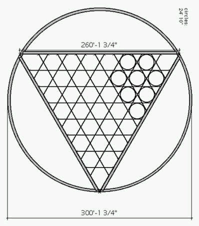 This is how they say it was laid out.. Actually these diagrams don't even match the top diagram, Look where the main triangle meets the circle, it's in a different place. They show lines marking out the